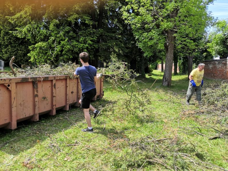 Další brigádu na hřbitově absolvovali členové našeho spolku v pátek 4. června. Cílem bylo uklidit větve a další "mrtvé dřevo" uskladněné u zdi hřbitova z předchozích brigád.