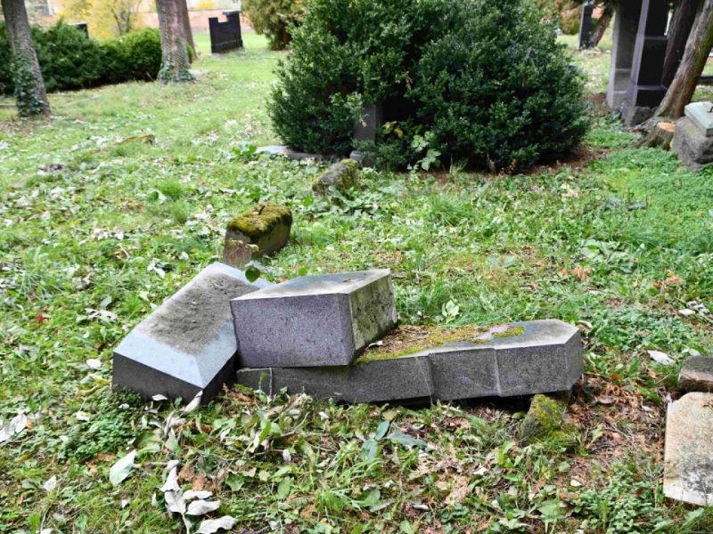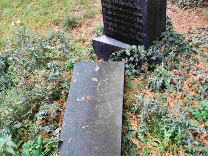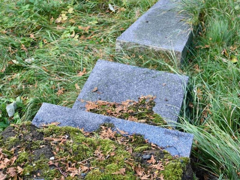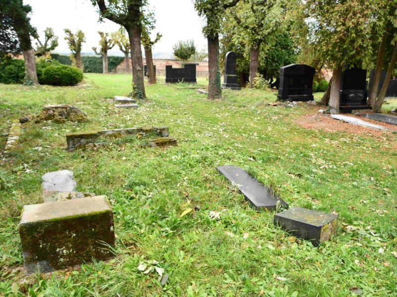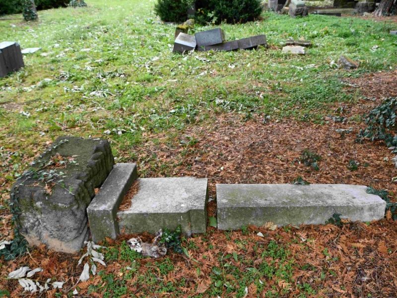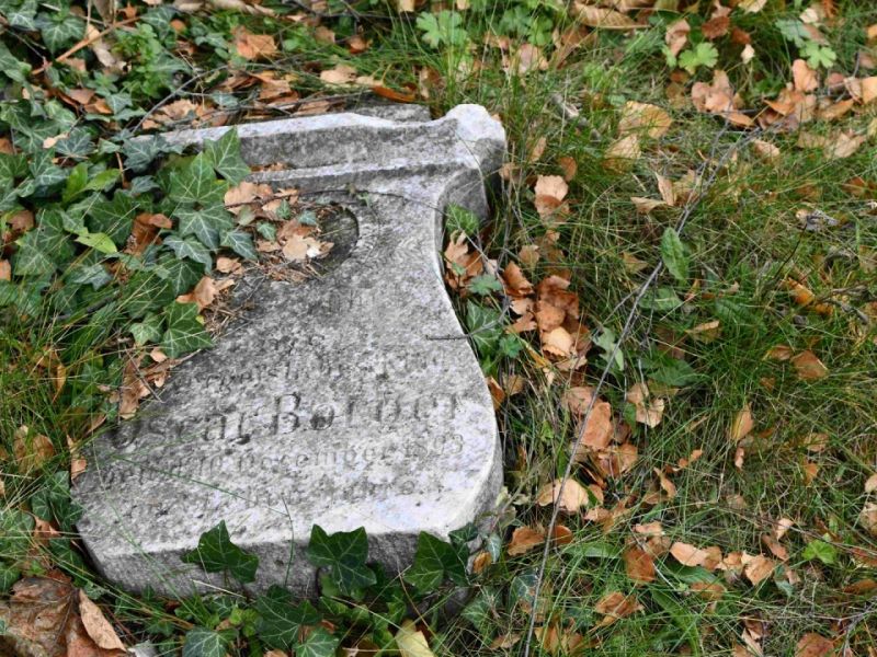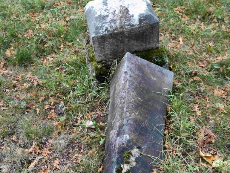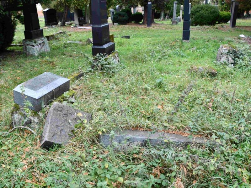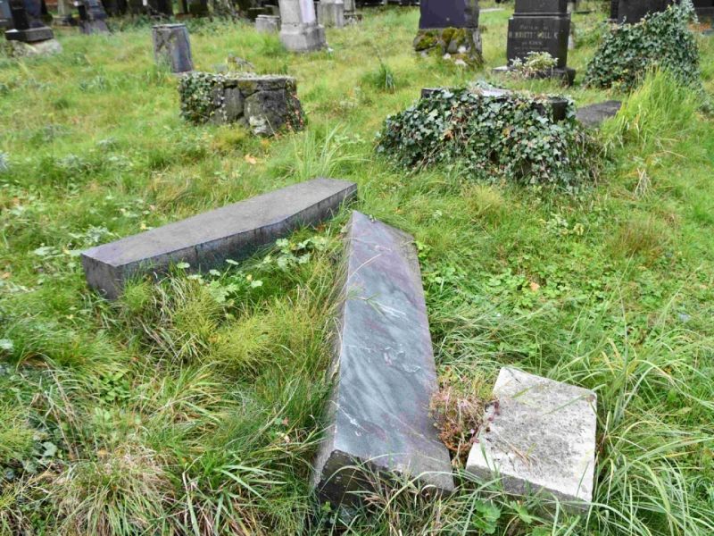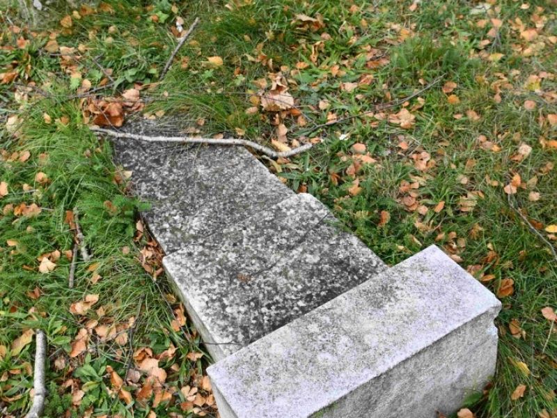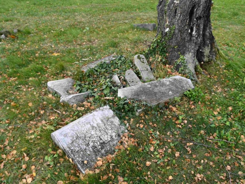 - Postupné zvedání spadlých náhrobků, jejich oprava,