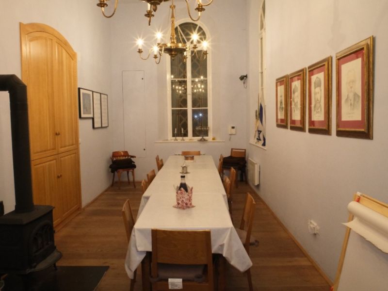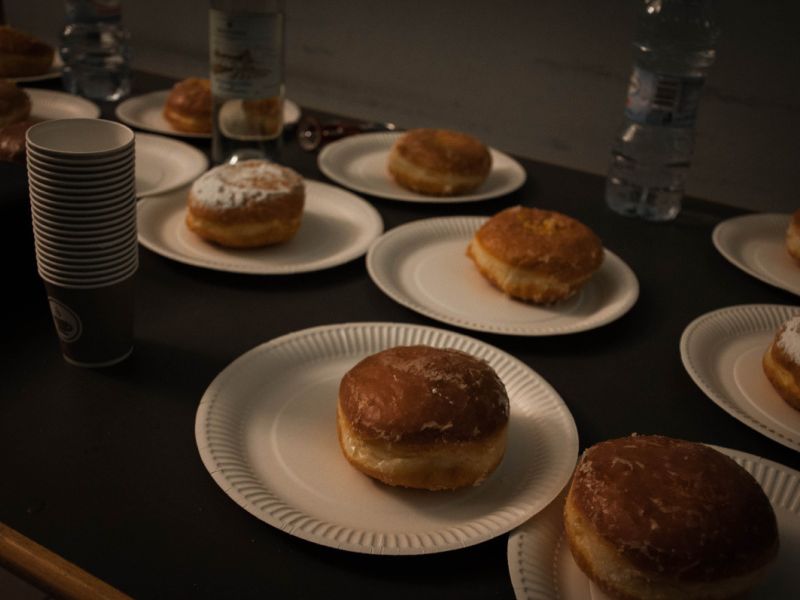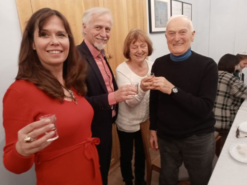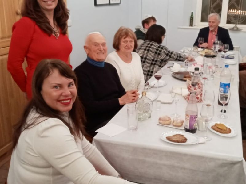 Poslední večer jsme se v omezeném počtu sešli ke společnému stolu a ochutnali tradiční chanukové pokrmy – koblihy, latkesy a bramboráky. Imunitu jsme na závěr posílili košer slivovicí Jelínek.