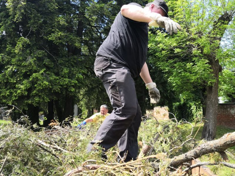 Další brigádu na hřbitově absolvovali členové našeho spolku v pátek 4. června. Cílem bylo uklidit větve a další "mrtvé dřevo" uskladněné u zdi hřbitova z předchozích brigád.